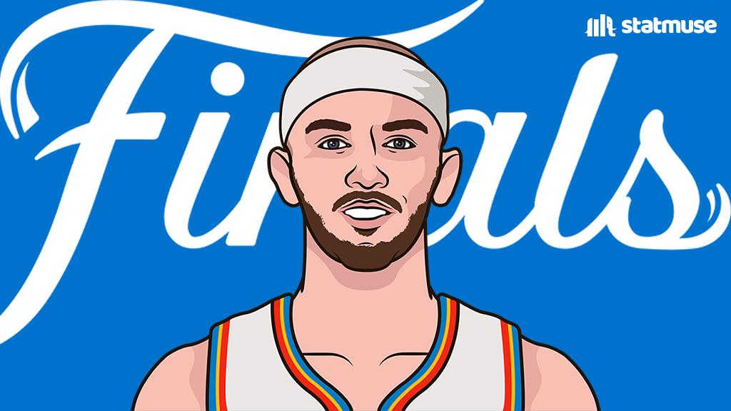 虎扑06月11日讯 今日,美媒StatMuse更新社交媒体,晒出雷霆球员亚历克斯-卡鲁索本赛季总决赛至今(G1、G2)的场均数据: